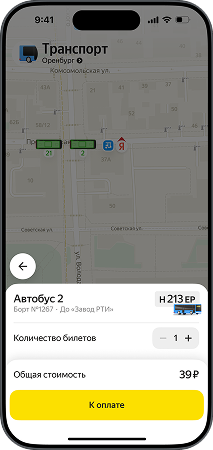 Яндекс Go поможет оренбуржцам построить маршрут на городском транспорте, а затем сразу оплатить проезд. Пассажир может купить билет, подключившись к Bluetooth-метке. Для этого достаточно активировать Bluetooth на телефоне, открыть сервис «Транспорт» и выбрать нужный автобус или троллейбус. Это так же просто, как подключиться к беспроводным наушникам или фитнес-браслету. Когда смартфон поймает сигнал метки, пользователь сможет купить билет.